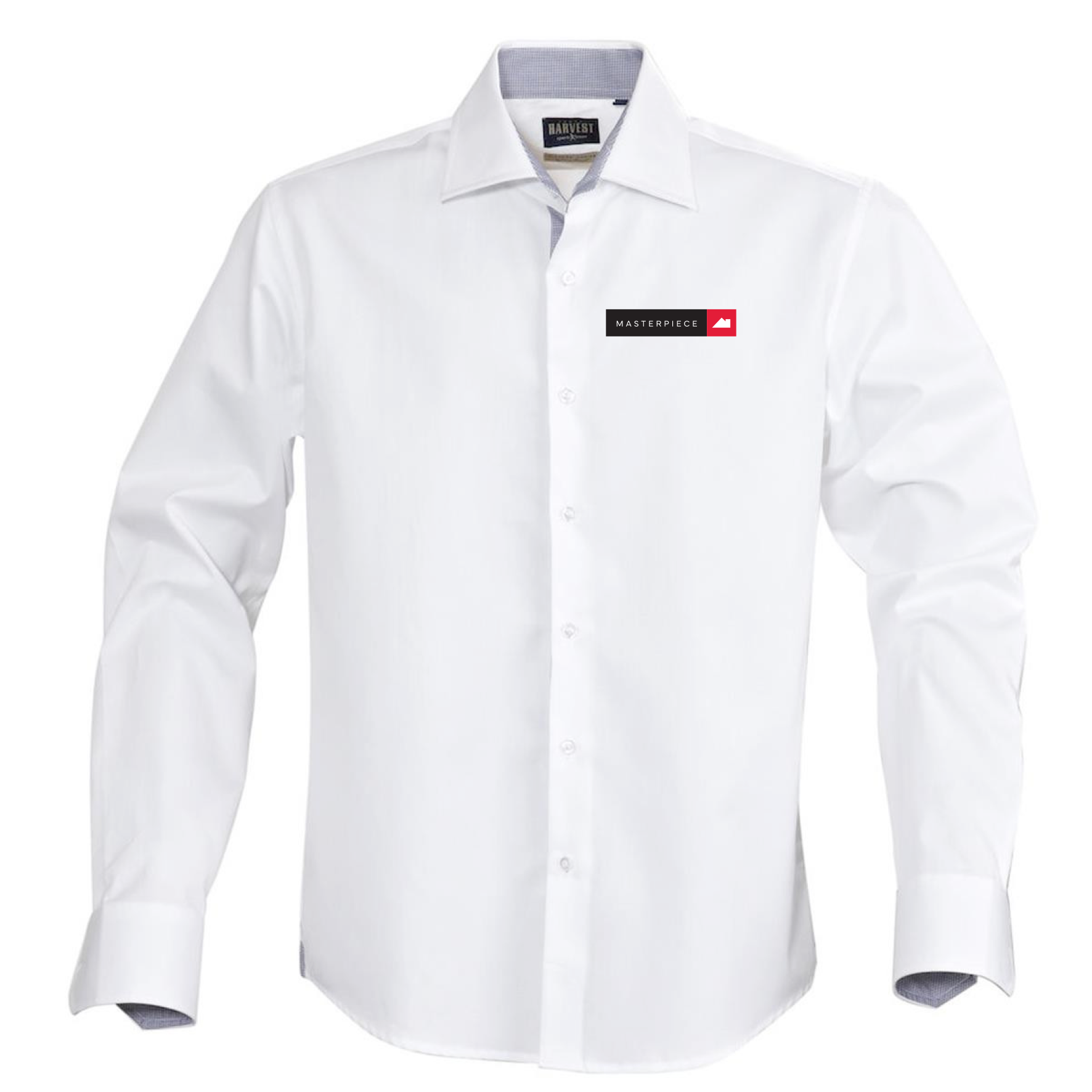 - Contrast fabric at cuffs, placket and inside collar.