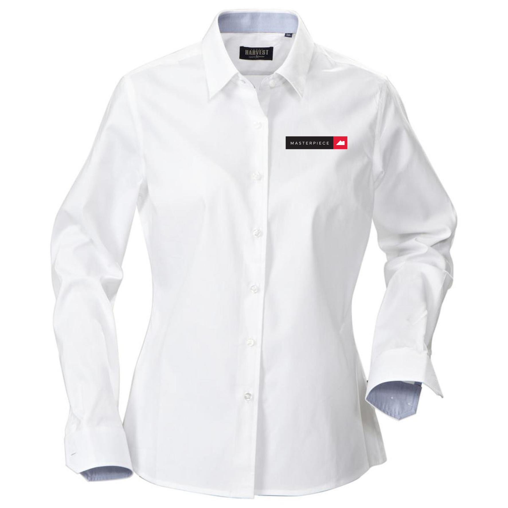 High quality ladies fitted blouse in easy care treated oxford fabric.