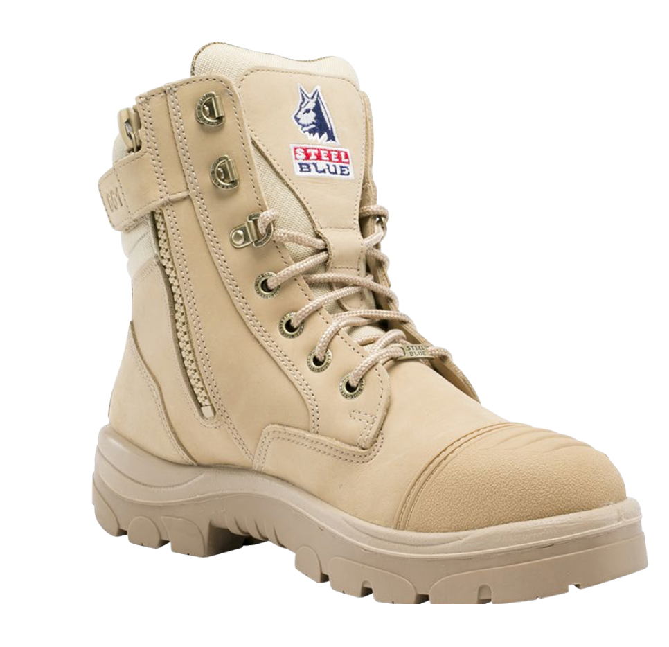 Trisole™ Comfort Technology Soling System: The Steel Blue soling system is a patented three density soling system that offers a high level of comfort, shock absorbency and energy return. The system uses PORON® as energy absorbing pads under the pressure points of the foot to give the wearer superior comfort and offers similar shock absorbency and comfort to sports footwear.